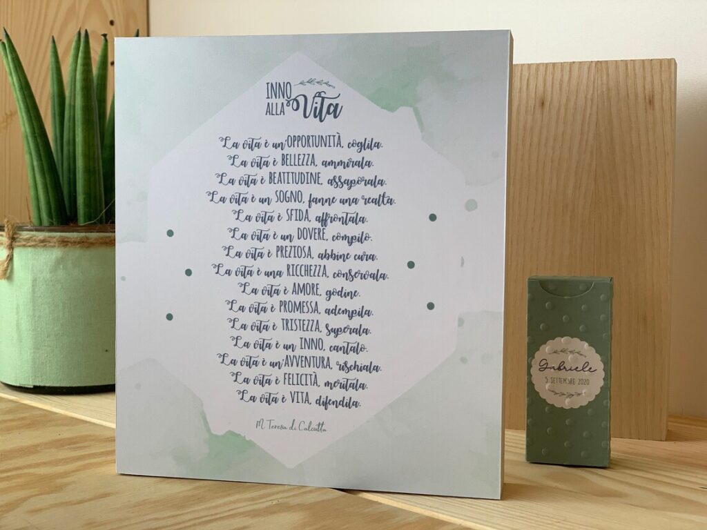 Oggi, questi simboli non perdono la loro forza, ma possono essere riletti in chiave moderna: prendono nuova vita in bomboniere di tendenza, con testi più attuali, grafiche contemporanee e design puliti, capaci di unire il significato profondo del sacramento con uno stile elegante e al passo con il 2026.