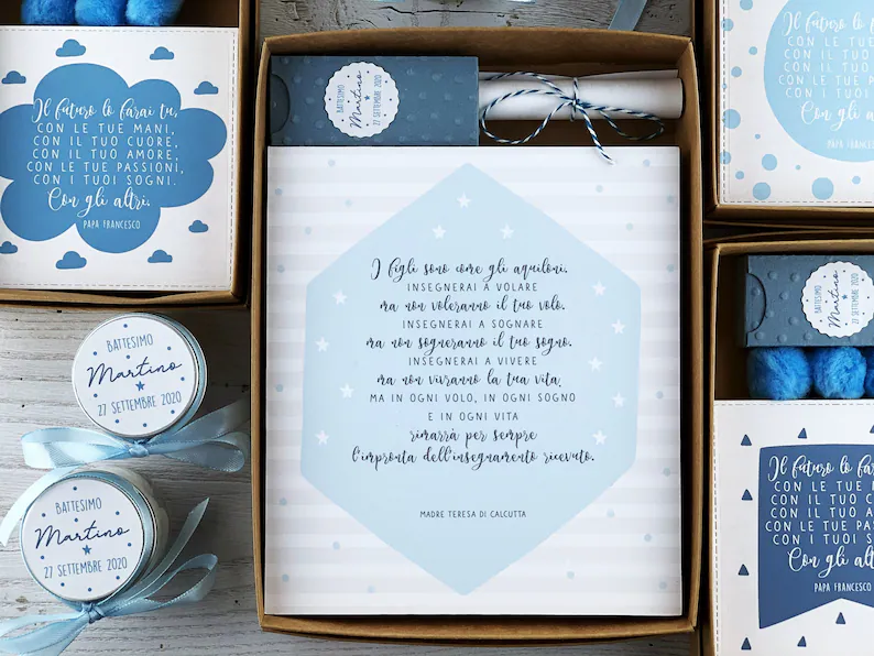 Lascia che ogni dettaglio racconti la storia della tua famiglia: scegli una bomboniera che unisca tradizione, modernità e autenticità, e che accompagni il Battesimo con un messaggio di amore e fede.