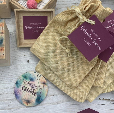 - Risparmiare sul budget: grazie alla duplice funzione, non serve acquistare separatamente segnaposti e bomboniere, riducendo i costi complessivi senza rinunciare allo stile.