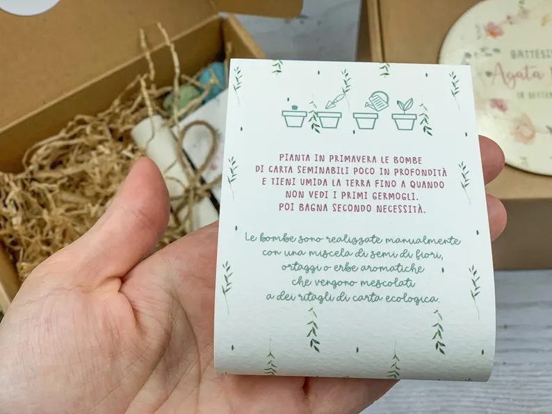 In più, il blister con semi è una bomboniera economica a 3€, semplice da personalizzare con nomi, date o piccoli messaggi, che unisce creatività, sostenibilità e significato simbolico. È un regalo che invita alla riflessione, all’attenzione verso gli altri e alla cura della natura, trasformando un piccolo gesto in un ricordo duraturo e speciale.