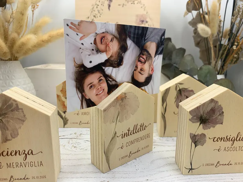 Ogni bomboniera può essere personalizzata con il nome del festeggiato, la data dell’evento, piccoli simboli o dettagli grafici che raccontano il sacramento. Questo rende ogni oggetto unico e trasformabile in un vero ricordo, capace di emozionare chi lo riceve. Grazie all’uso del legno, materiale naturale e resistente, le bomboniere non solo hanno un aspetto elegante e artigianale, ma diventano anche oggetti duraturi che possono essere esposti in casa o riutilizzati in modi creativi.